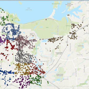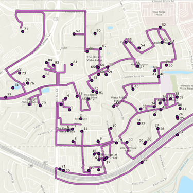 Shortest routes among commercial, industrial, and multi-family water meters.